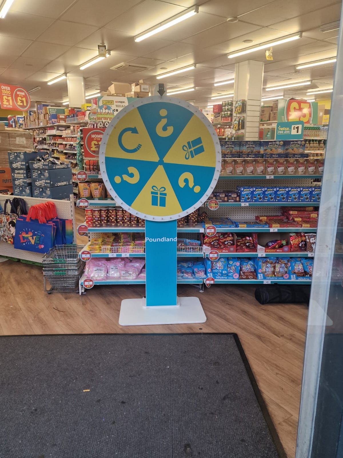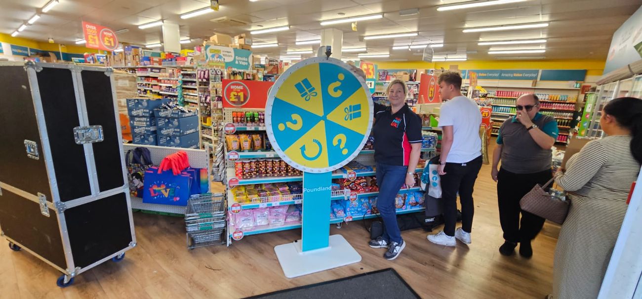 The custom branding extended beyond aesthetics to functionality. The wheel segments were designed to align with Poundland's product ranges and promotional offers, creating natural connections between the game experience and actual shopping opportunities. This approach meant the activation wasn't just entertainment - it was a genuine marketing tool that could drive both immediate sales and longer-term customer relationships.