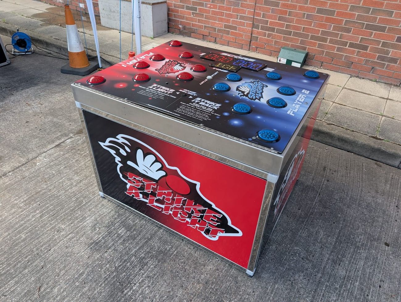 The outdoor marquee setup presented specific practical considerations. Power supplies needed to be reliable and safely installed. Equipment had to be positioned to maximise visibility and flow whilst accounting for weather protection.