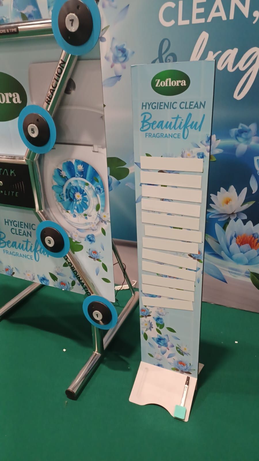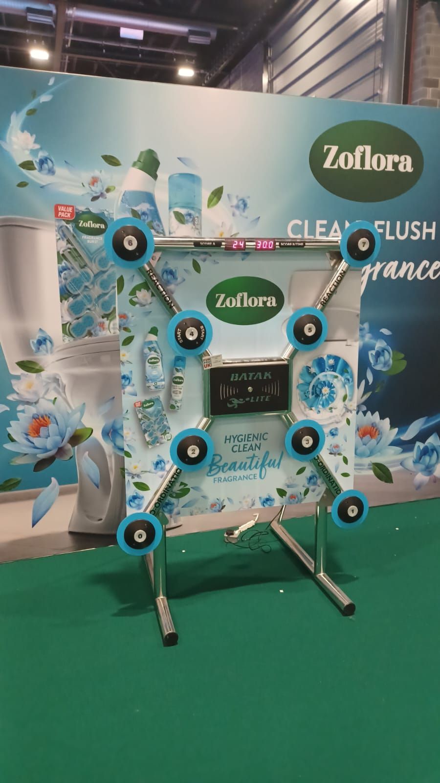 However, Zoflora faced a common challenge at trade conferences: how to attract and engage busy retail buyers who are approached by numerous suppliers throughout the day. Traditional exhibition stands with static displays often fail to capture attention in crowded conference halls filled with competing brands. Zoflora needed an interactive solution that would draw buyers to their stand, create genuine engagement opportunities, and reinforce their brand identity in a way that felt natural and enjoyable rather than forced or overly commercial.