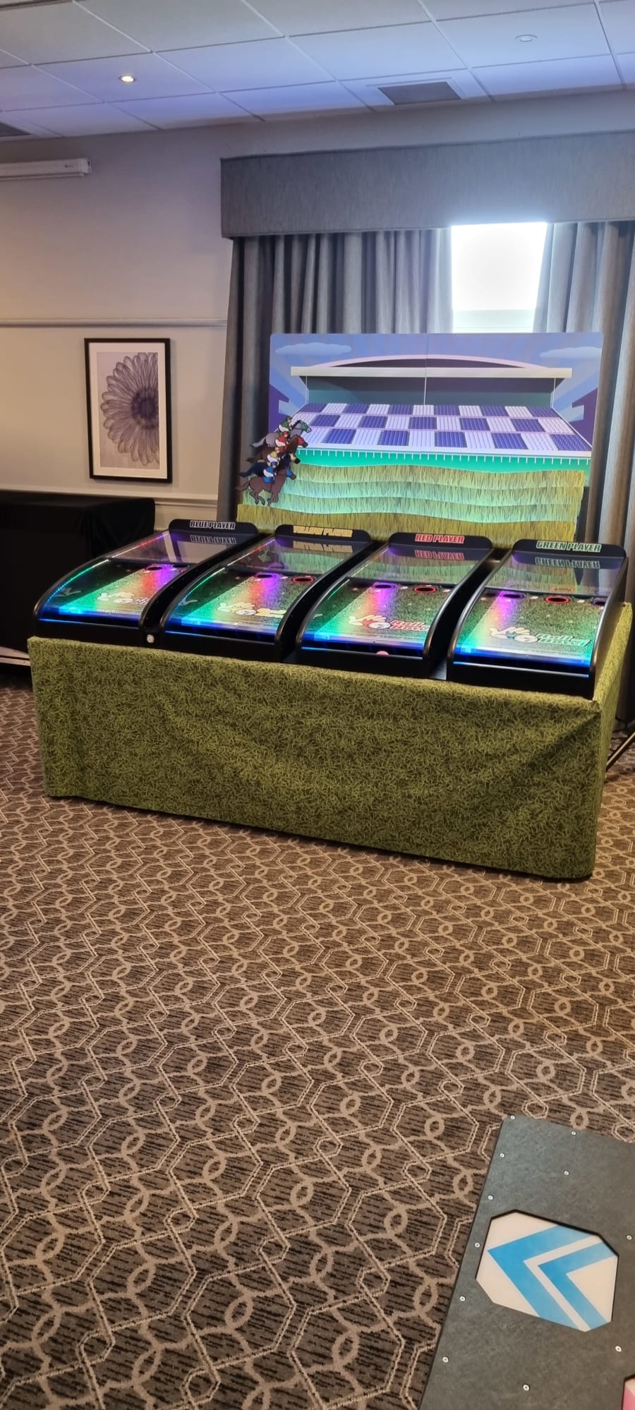 Why not hire the roll and bowl Derby horse racing game for your next instore promotion exhibition stand, party or brand activation. We guarantee it will attract a crowd and enable you to engage with your clients, it's a real winner!