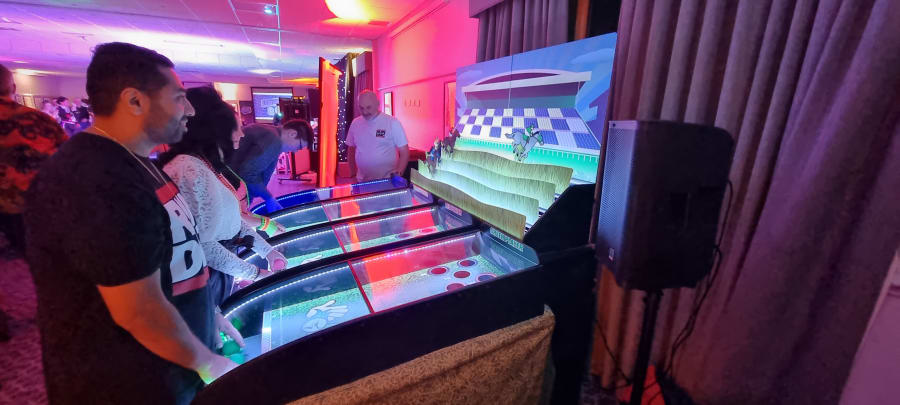 The roll and bowl hire is a fun option that not everyone may be familiar with just yet. The game has a built-in PA system and LED lighting to add an additional element of fun. This game will add some fun to your next big event!