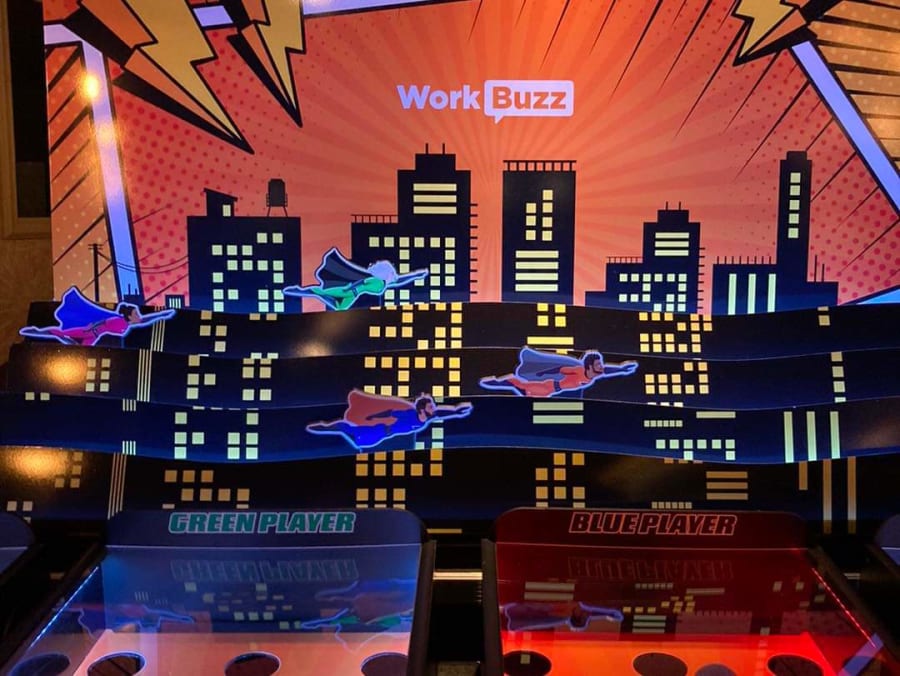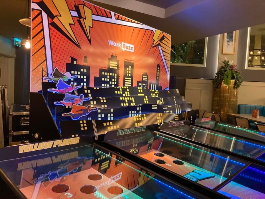 Here at Fun Pro we have the ability to brand your game hire with your company logo, increasing footfall to your exhibition stand, instore promotion and event ensuring you reach the engagement with future clients that your competitors won't. For more information and pricing on branding please email our team.
