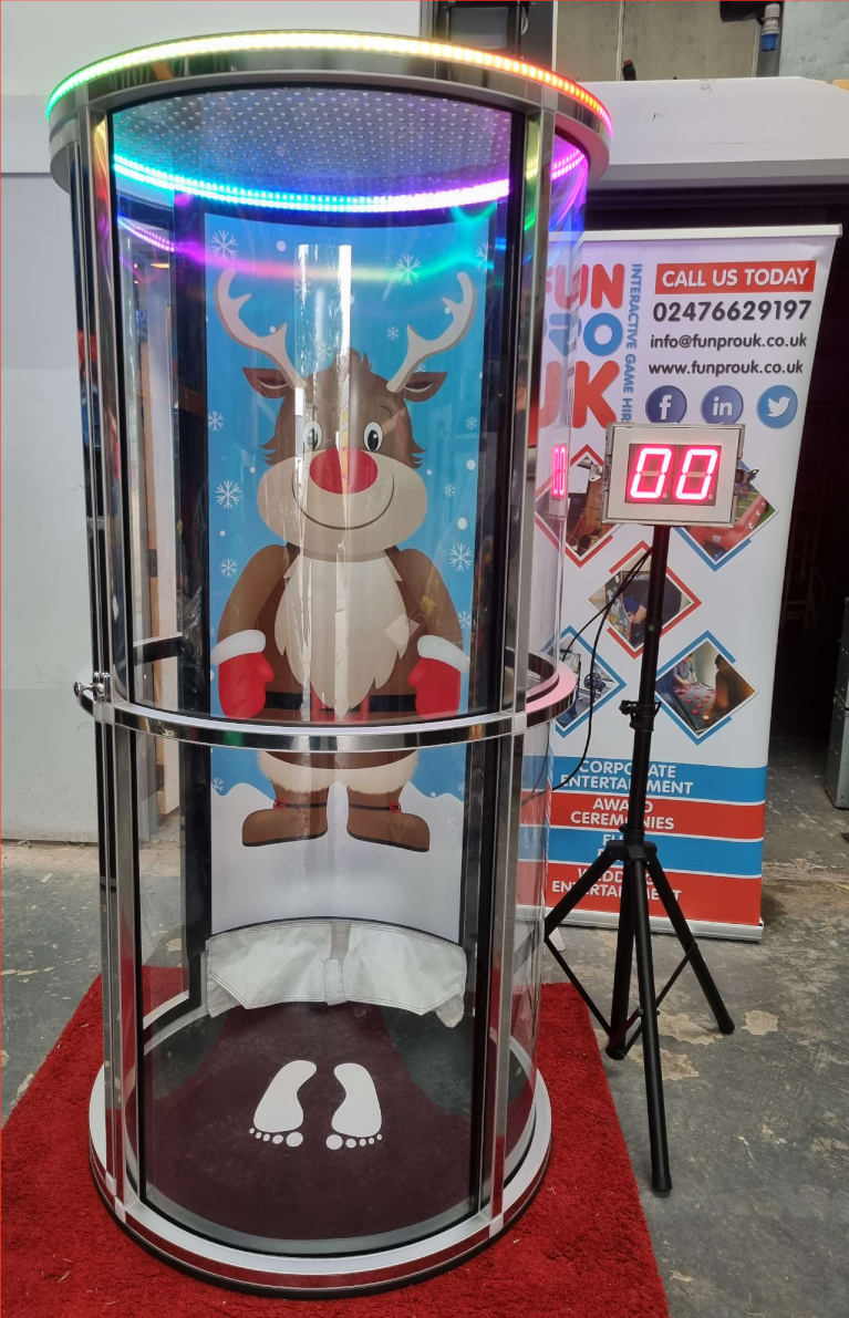 The Ballnado grabber is a great way to draw crowds and create some buzz. Contestants step into the clear chrome-framed capsule, the wind fan starts kicking in, and suddenly soft foam balls are in the air! The challenge? Collect as many balls as possible in just 30 seconds! But remember, no sneaky ball-hoarding inside your clothes!