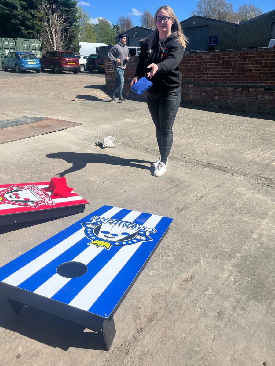 Fun Pro UK offers premium Corn Hole hire throughout the United Kingdom. Our dedicated team handles all logistics, ensuring seamless delivery, setup and collection*