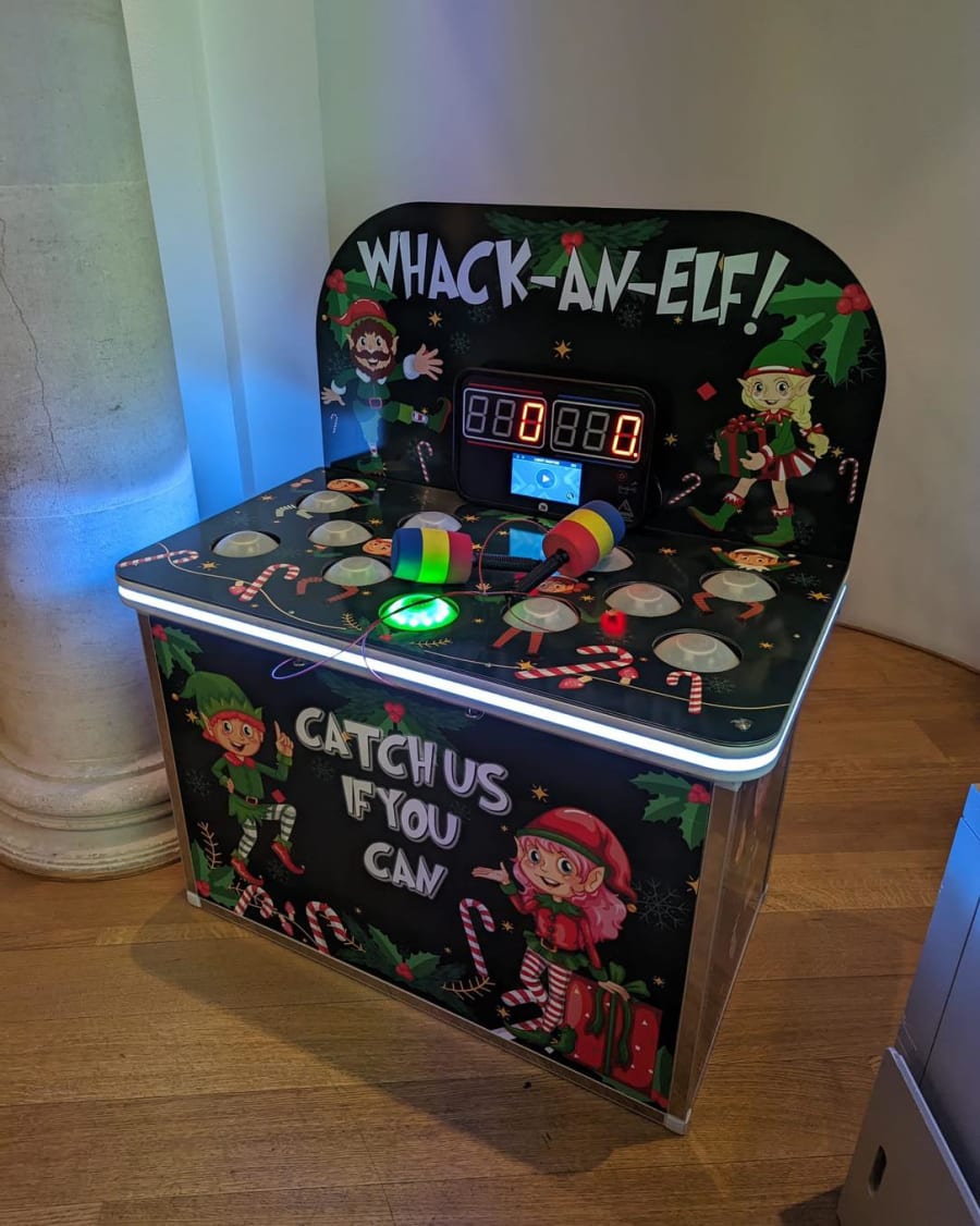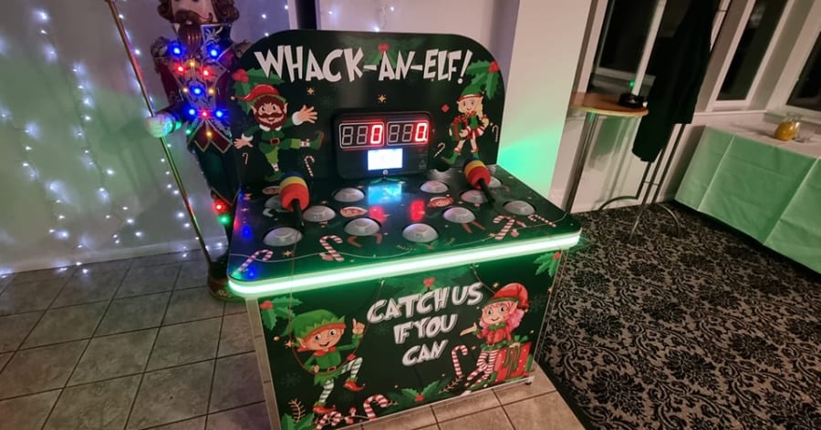 - How to Play: Bring some competitive fun to your party with this interactive arcade-style game. Players use a mallet to whack elfs that pop up from the game board, trying to hit as many as possible in a set time. It's a Christmas version of Whack a Mole!