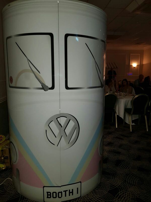 The evening party began at 7pm , our green screen dream machine photo booth was all ready to keep the guests entertained with our staff on hand to ensure each guest had a great time taking selfies all night long. We heard that the bride loved VW camper vans so this is what the couple chose for the outer skin of their booth which went amazingly well with their theme.