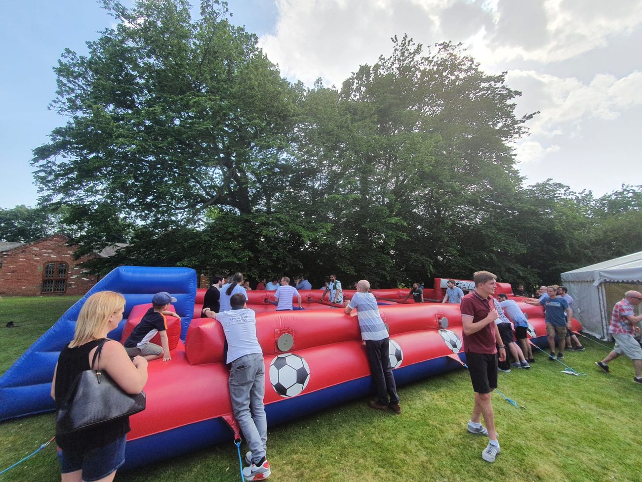 Some of of our most popular products during the summertime are our inflatable slides. Our Super Slides are a huge hit with both kids and adults alike, with some featuring double alleys for some friendly competition. You could raise the heat even further with our Gladiator Duel!, or get everyone involved with our Human Table Football!