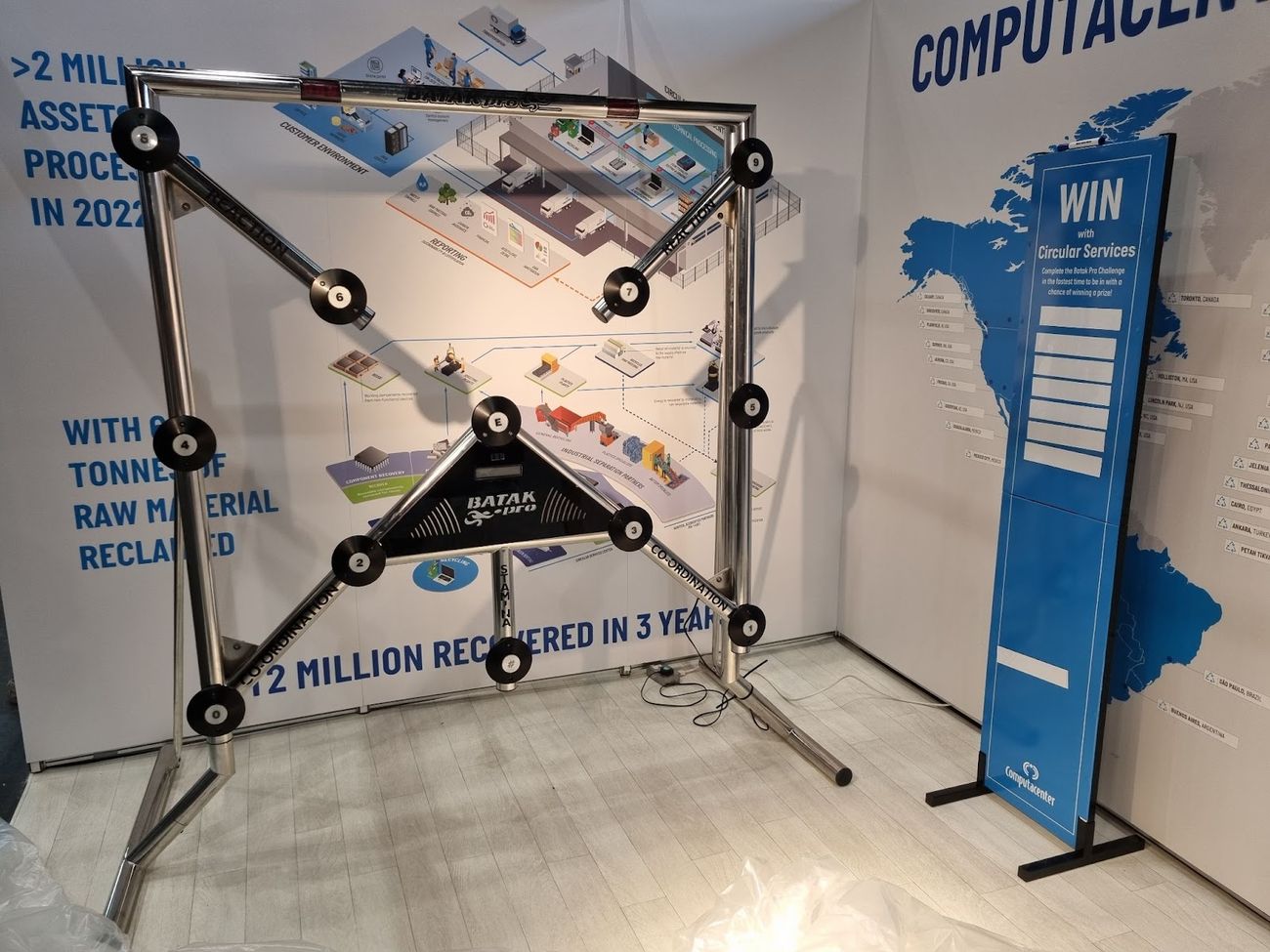 Reaction games like ++Batak Lite++ are excellent for this. The format is fast-paced and competitive: illuminated targets light up in sequence and players hit them as quickly as possible to achieve the highest score. It creates a leaderboard dynamic naturally; people want to beat their score, then beat the person before them, then return to defend their position. Whilst someone is playing, colleagues gather to watch and cheer. Your stand team can engage with the crowd whilst others wait their turn, and the conversation starts from a place of shared energy rather than cold pitch.