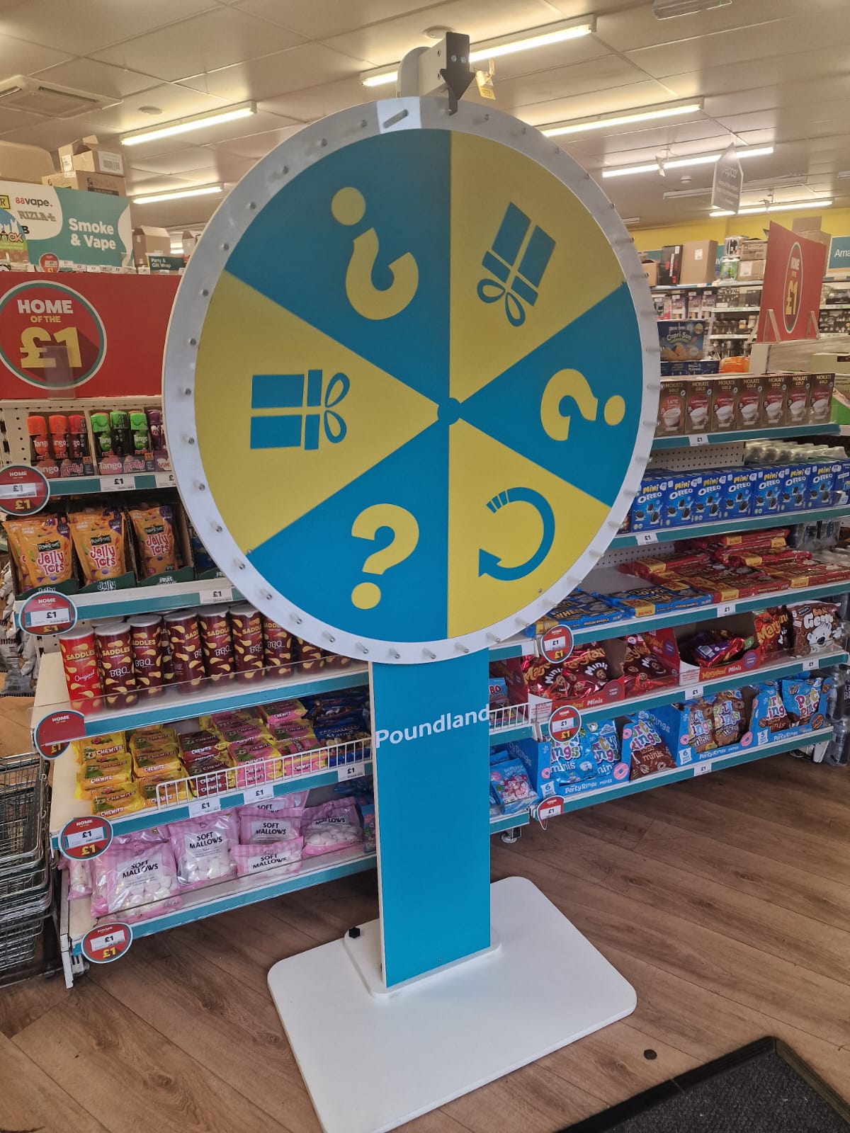 The custom branding extended beyond aesthetics to functionality. The wheel segments were designed to align with Poundland's product ranges and promotional offers, creating natural connections between the game experience and actual shopping opportunities. This approach meant the activation wasn't just entertainment - it was a genuine marketing tool that could drive both immediate sales and longer-term customer relationships.