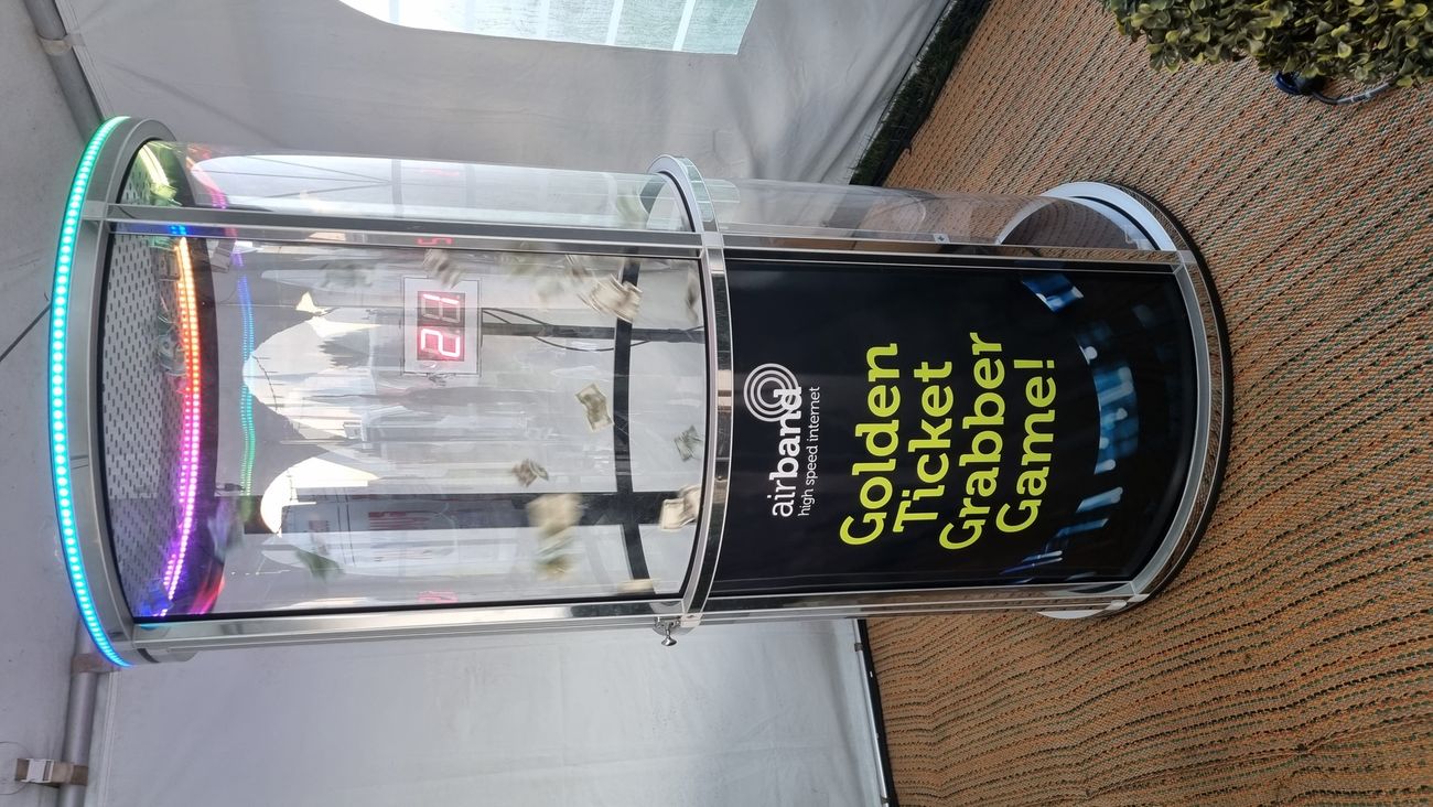 Looking to add some excitement to your event? Our Cash Grabber Machine is the perfect choice for conferences, well-being days, exhibitions, fun days, and brand activation events. Step into the Grab 'A' Grand Cash Cube and experience the thrill of grabbing as many vouchers or money notes as you can in just 30 seconds.