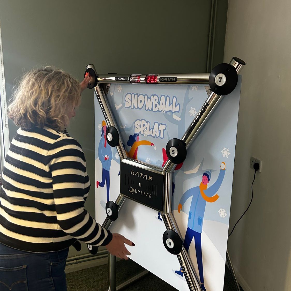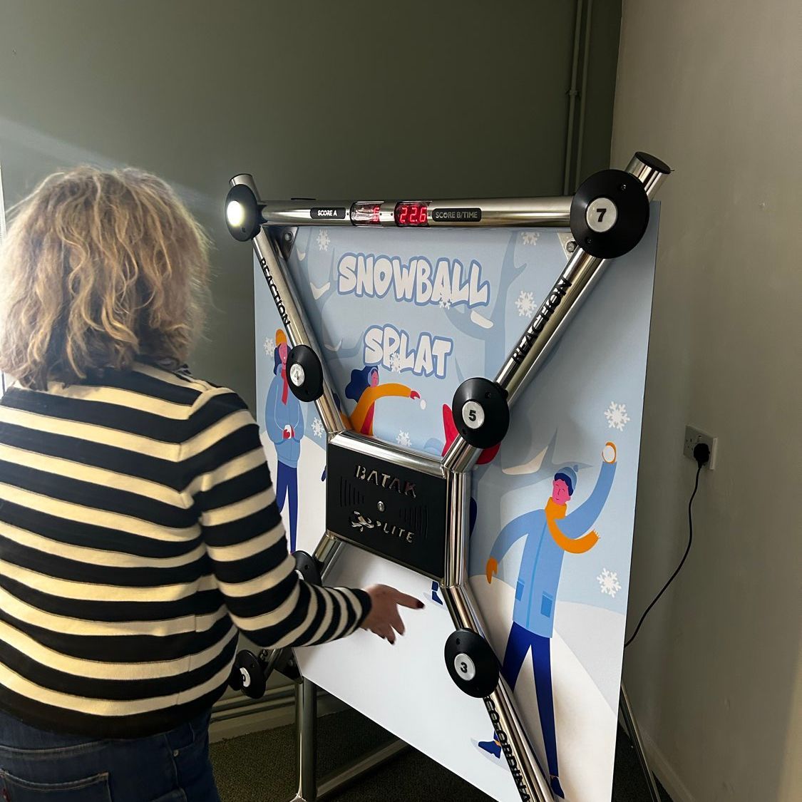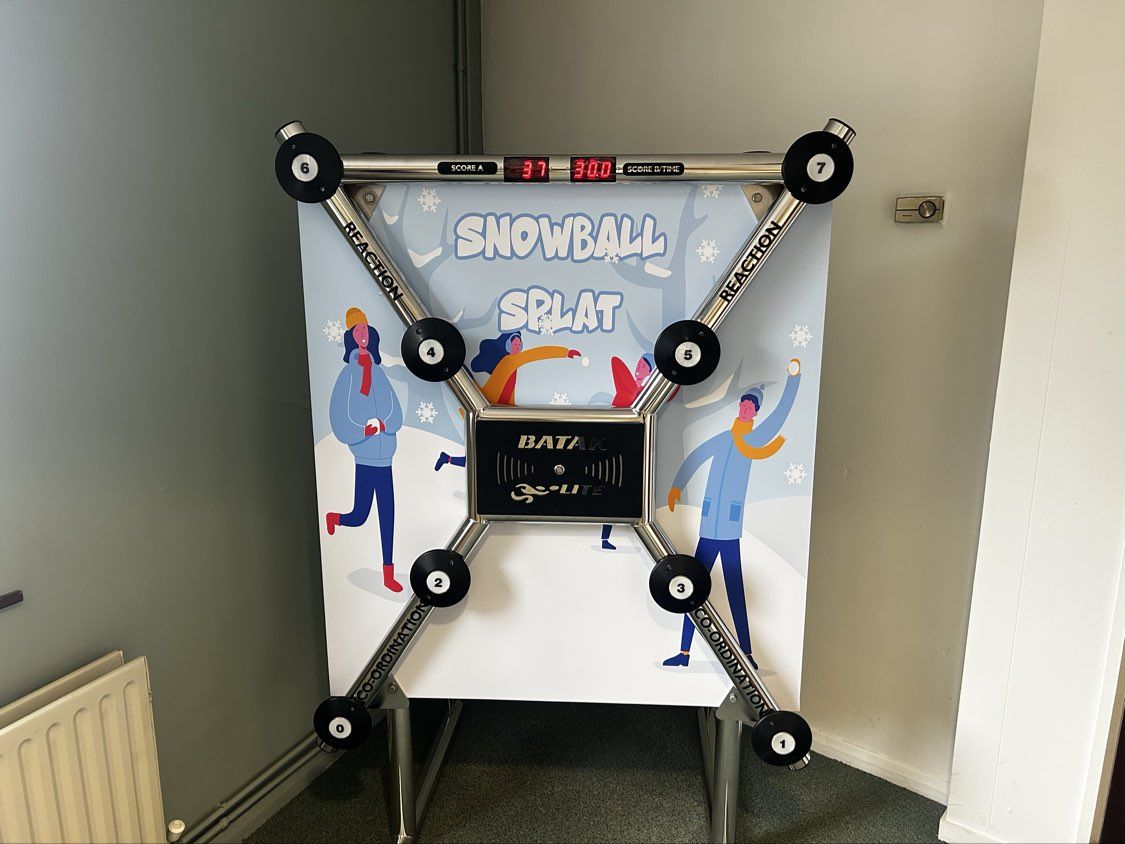 Batak Lite features bright, illuminated targets and fast-paced gameplay. Players race against the clock to hit as many lights as they can, testing their reflexes, hand-eye coordination, and holiday stamina in a quick-fire challenge.