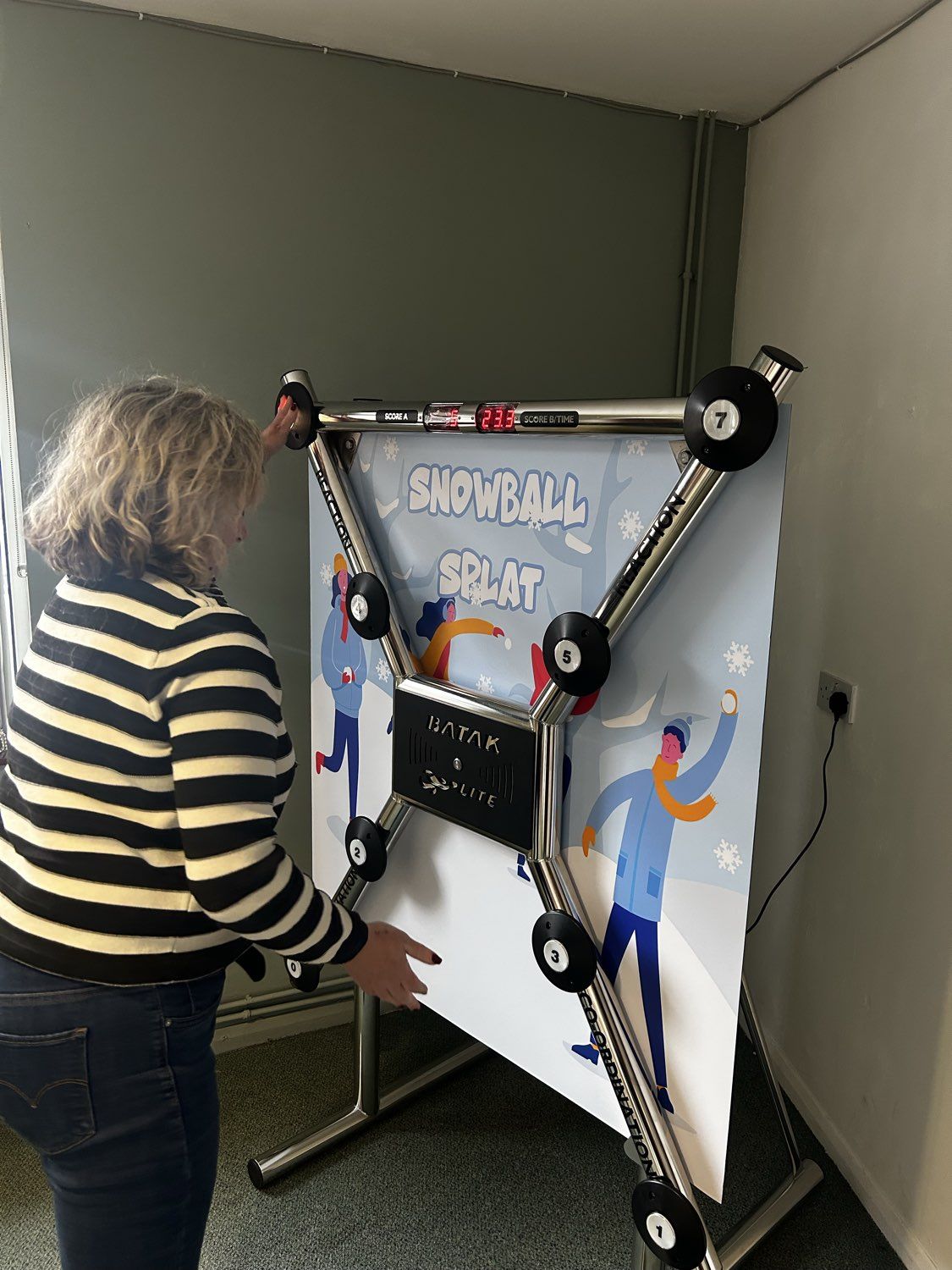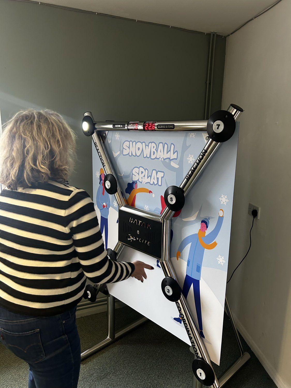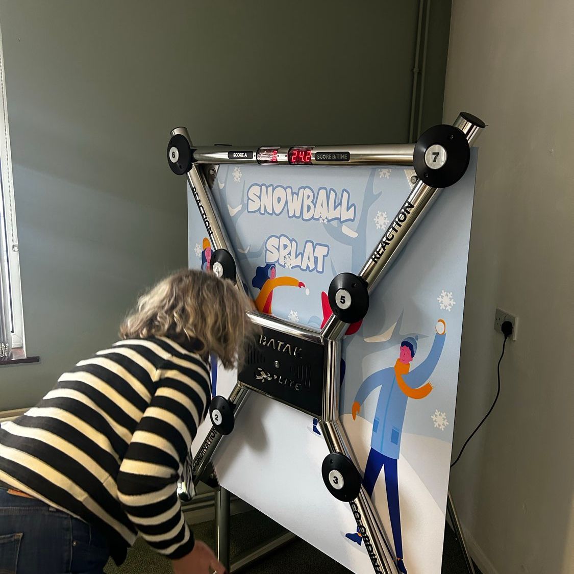Batak Lite features bright, illuminated targets and fast-paced gameplay. Players race against the clock to hit as many lights as they can, testing their reflexes, hand-eye coordination, and holiday stamina in a quick-fire challenge.