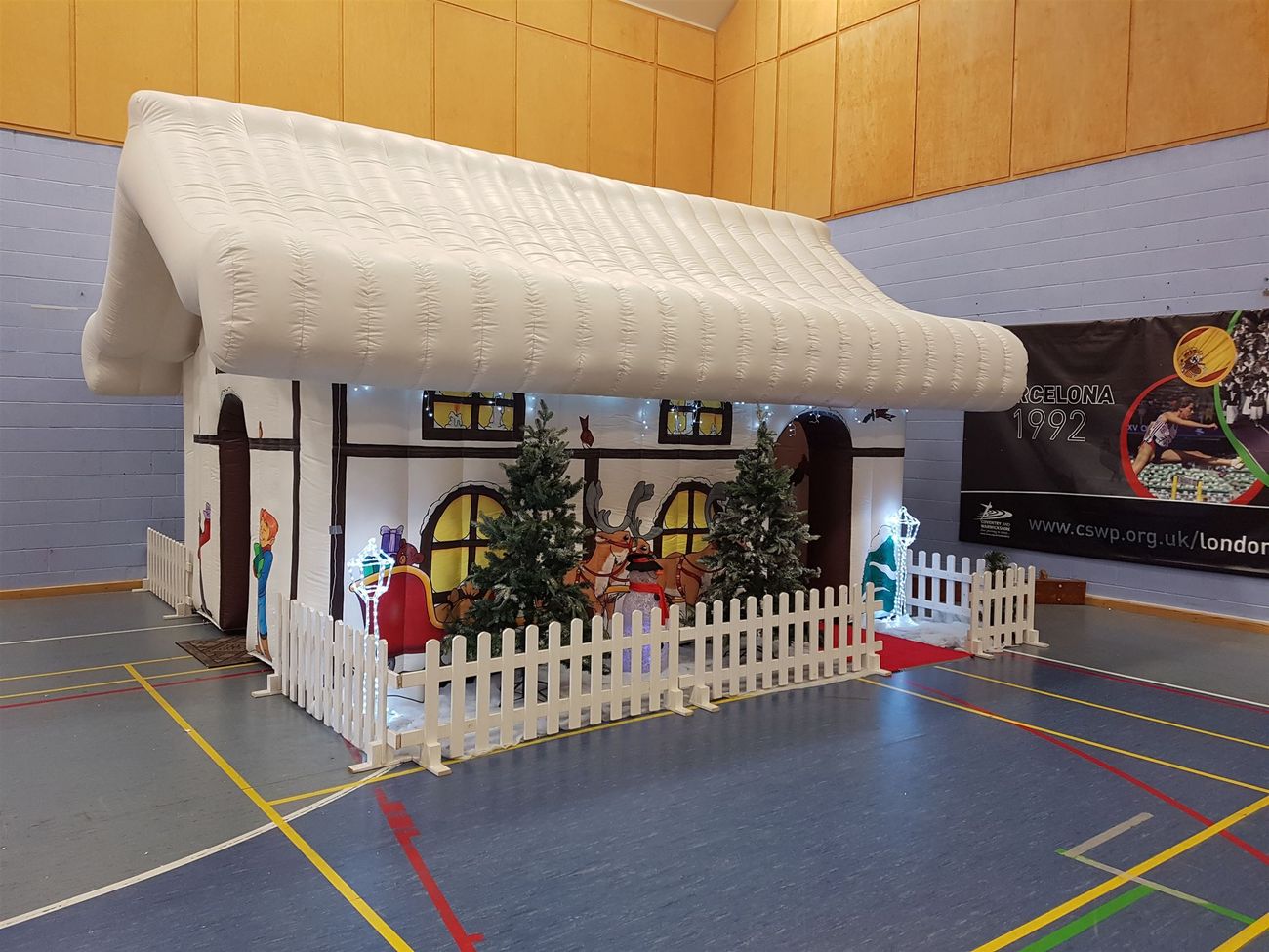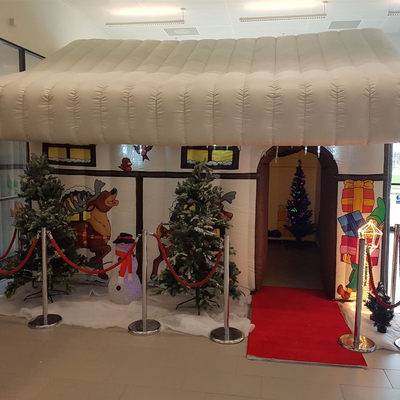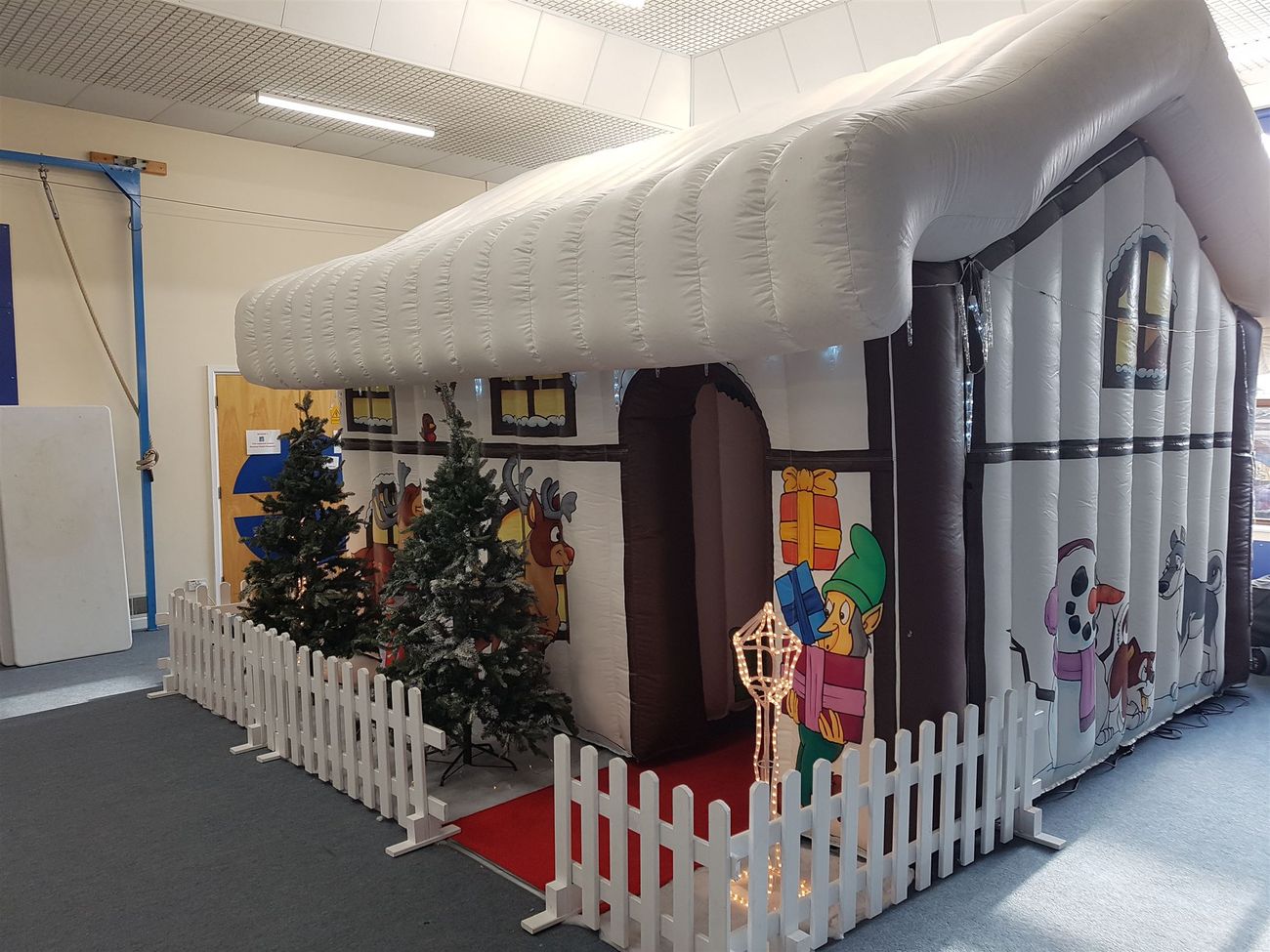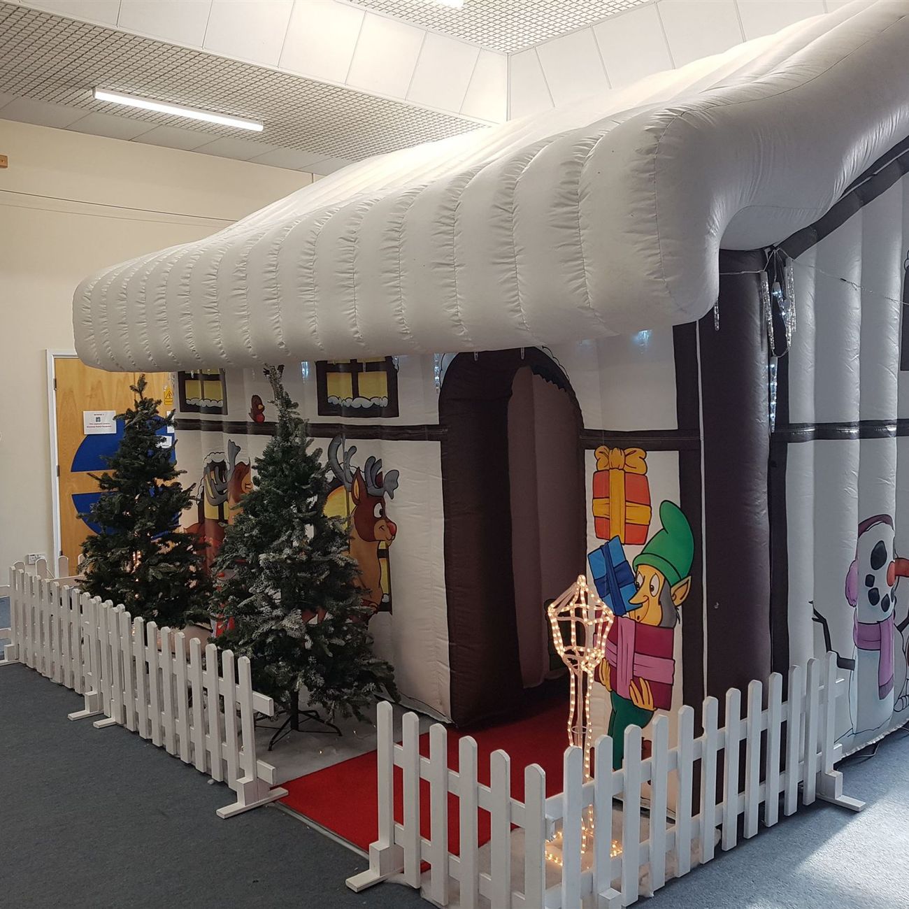 This versatile inflatable comes with a full set of seasonal props to add to the atmosphere, with everything expertly set up by our staff before they leave. Inside you'll find twinkling lights and a fully decorated Christmas tree, creating a warm and magical setting for visitors.