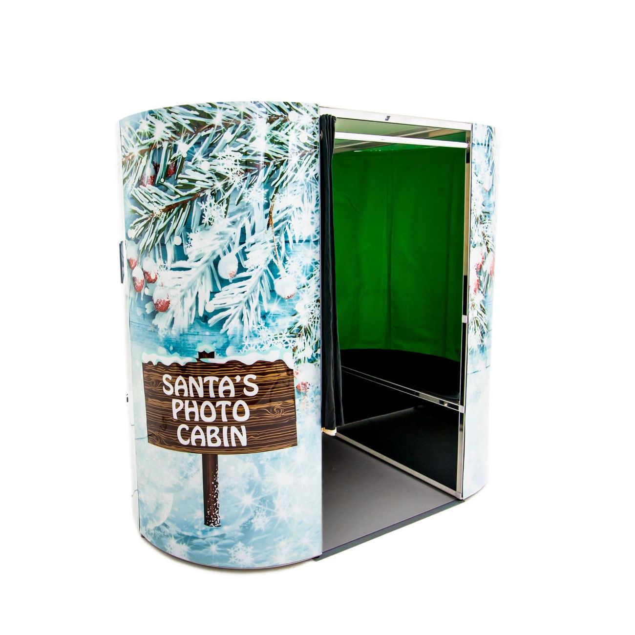 The booth includes festive props, Christmas-themed backdrops, instant prints, and digital copies for sharing. Everything needed for memorable festive photos.
