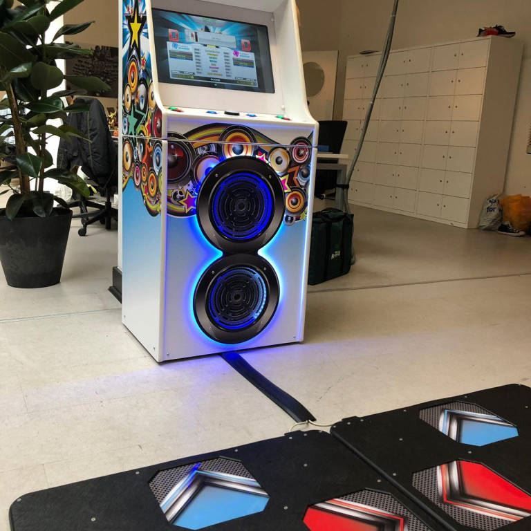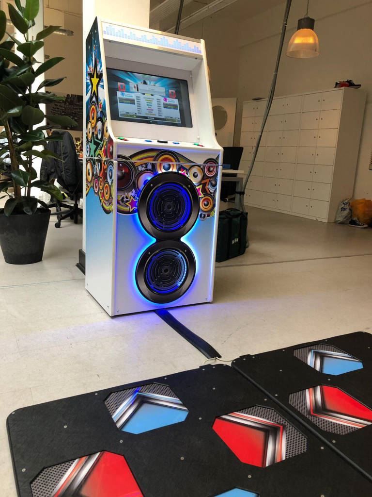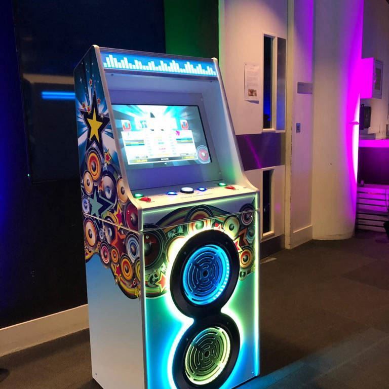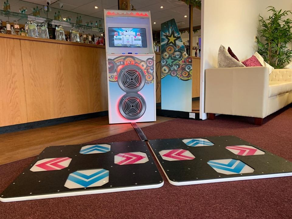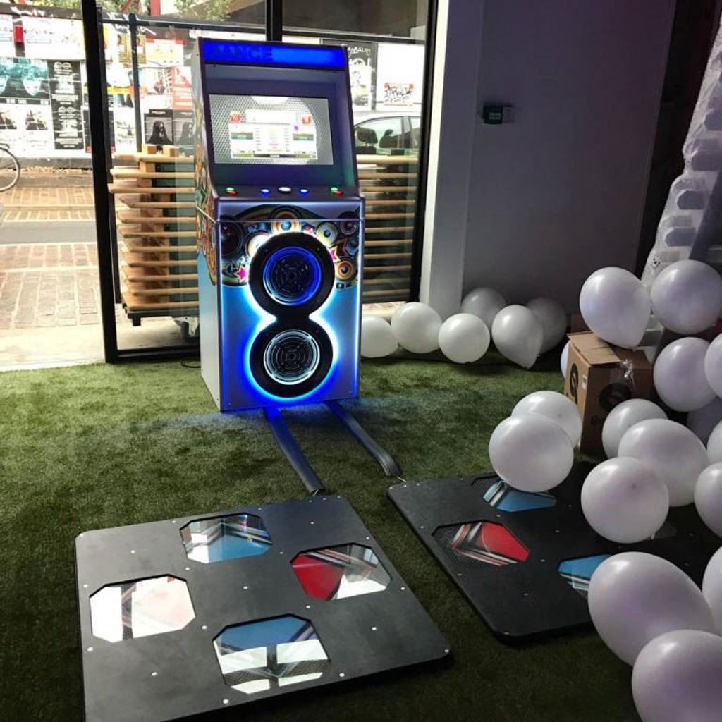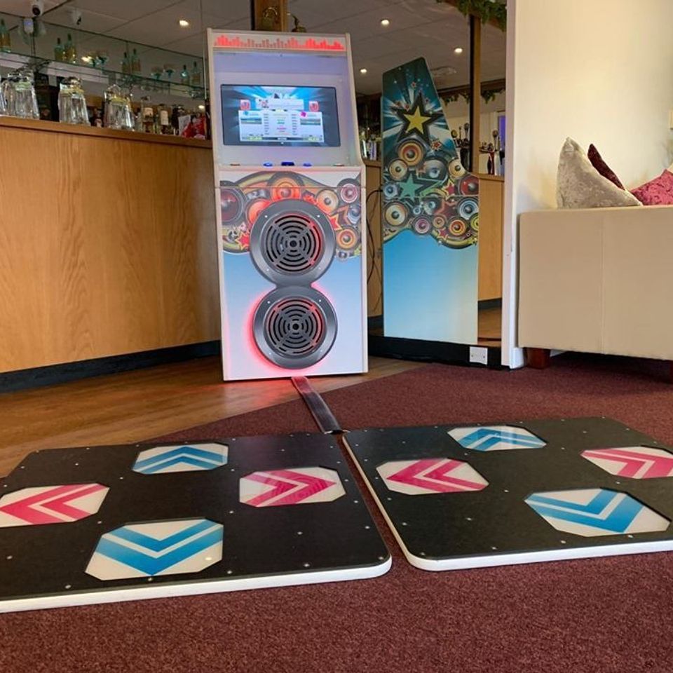 Get the party started with our Dance Machine hire. We offer the ultimate Dance Machine experience that will have your guests grooving all night long. Our Dance Machine hire includes an authentic retro arcade cabinet with a high-definition display screen, two arcade-style disco dance mats for a dance-off or side-by-side routines, a powered PA system, and ultra-bright colour change lights.