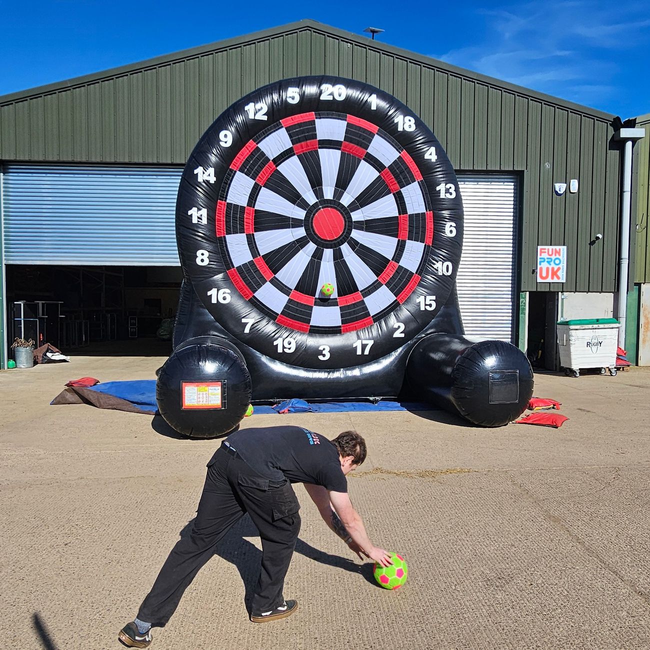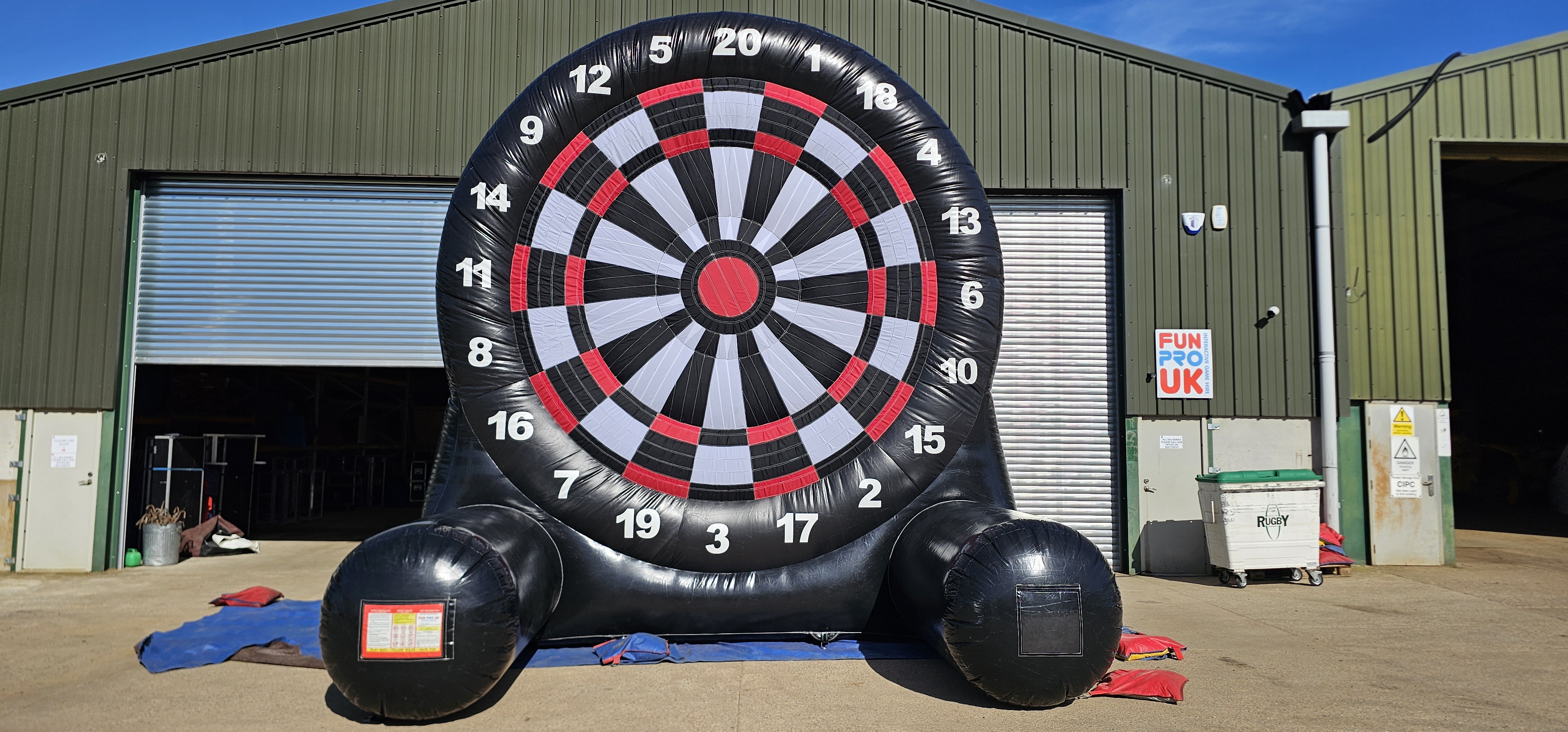 The inflatable dartboard requires indoor use on a level surface, with a minimum door width of 0.6m for access. Our team handles all positioning and equipment setup on the day.
