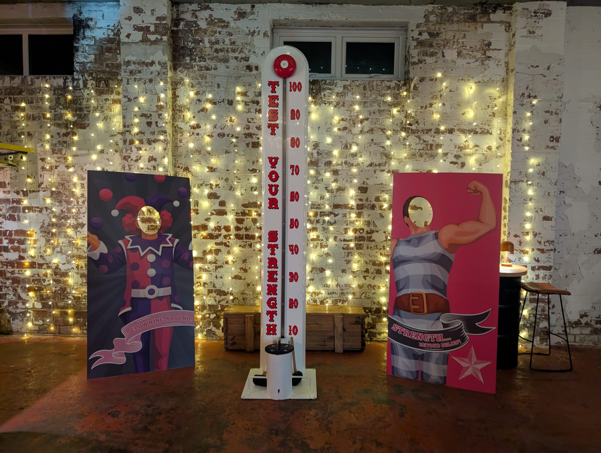 The High Striker needs adequate height clearance and surrounding space for safe swinging. We'll discuss your venue when you enquire.
