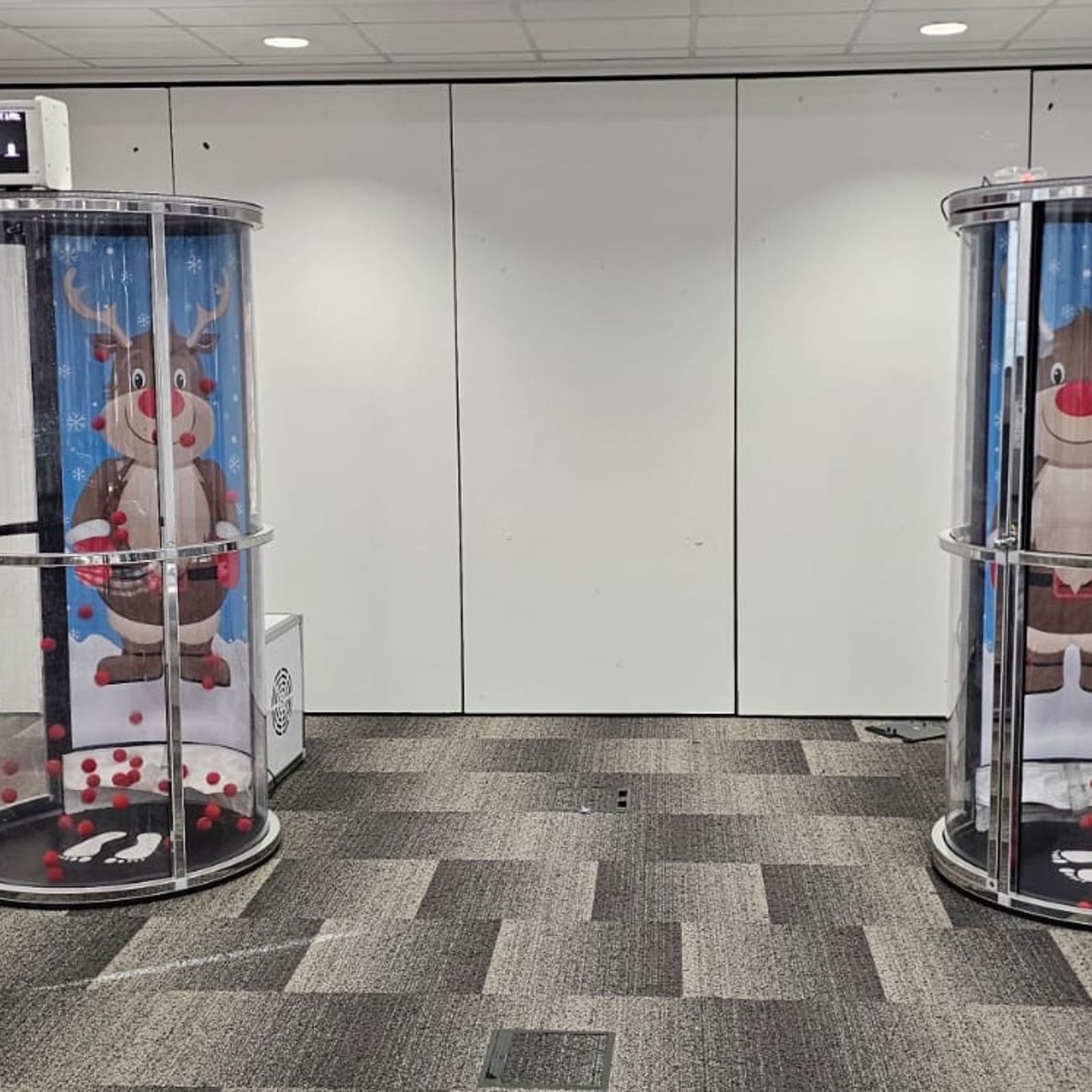 Rudolph's Red Nose Challenge Ballnado game is amazing fun for corporate Christmas parties, office Christmas party hire, Christmas promotional events, and much more. The game provides fun and laughter along with a little friendly competition. Who knew how much entertainment could be had by catching reindeer noses!