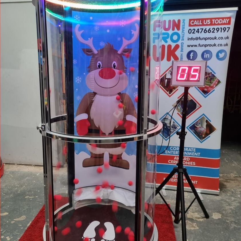 You may have seen the Ballnado game hire and Cash Grabber, but this is a whole new take on the game providing festive Christmas game hire fun. Perfect for conferences, well-being days, exhibitions, fun days, and brand activations, the Reindeer Nosenado is guaranteed to bring fun and laughter to all for your seasonal events.