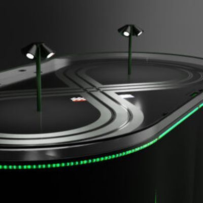 Players control slot cars using hand-held throttles, racing around the track against opponents. Speed management matters as cars can fly off corners if pushed too hard. Multiple lanes allow simultaneous racing, creating direct competition.