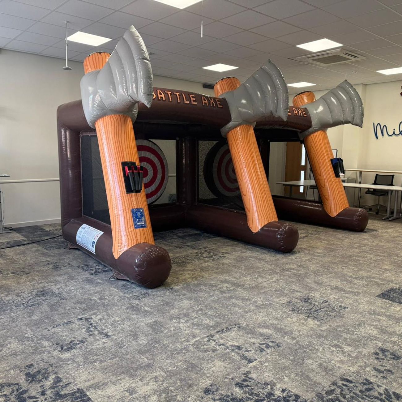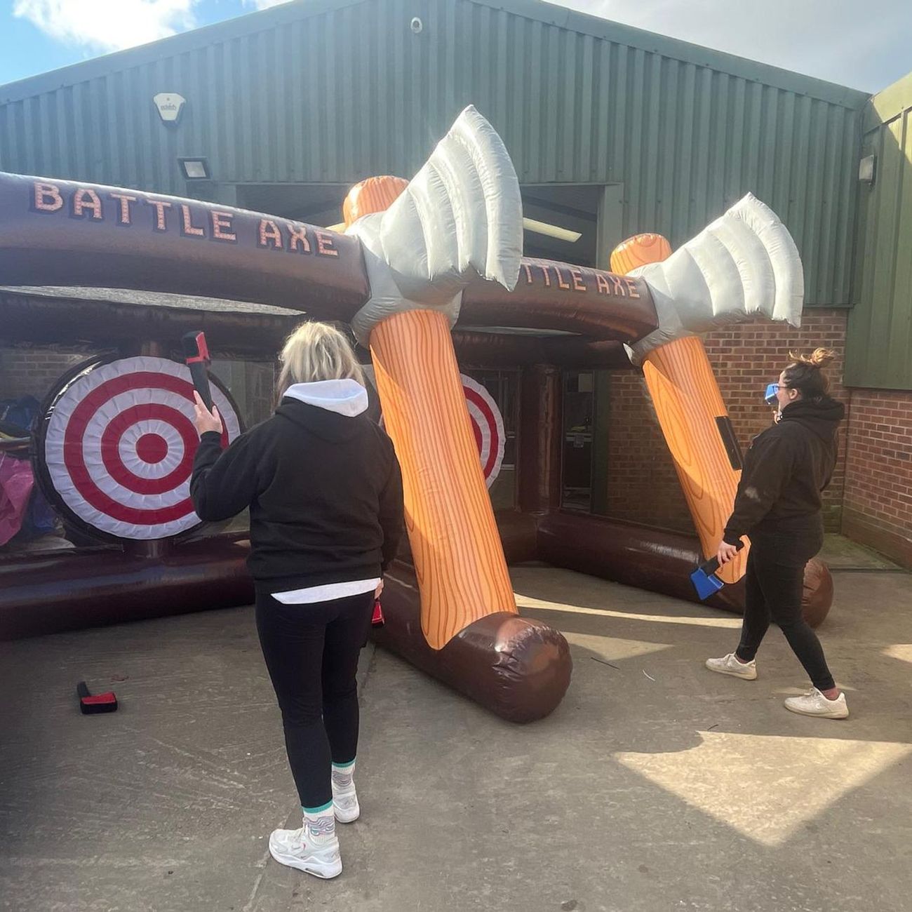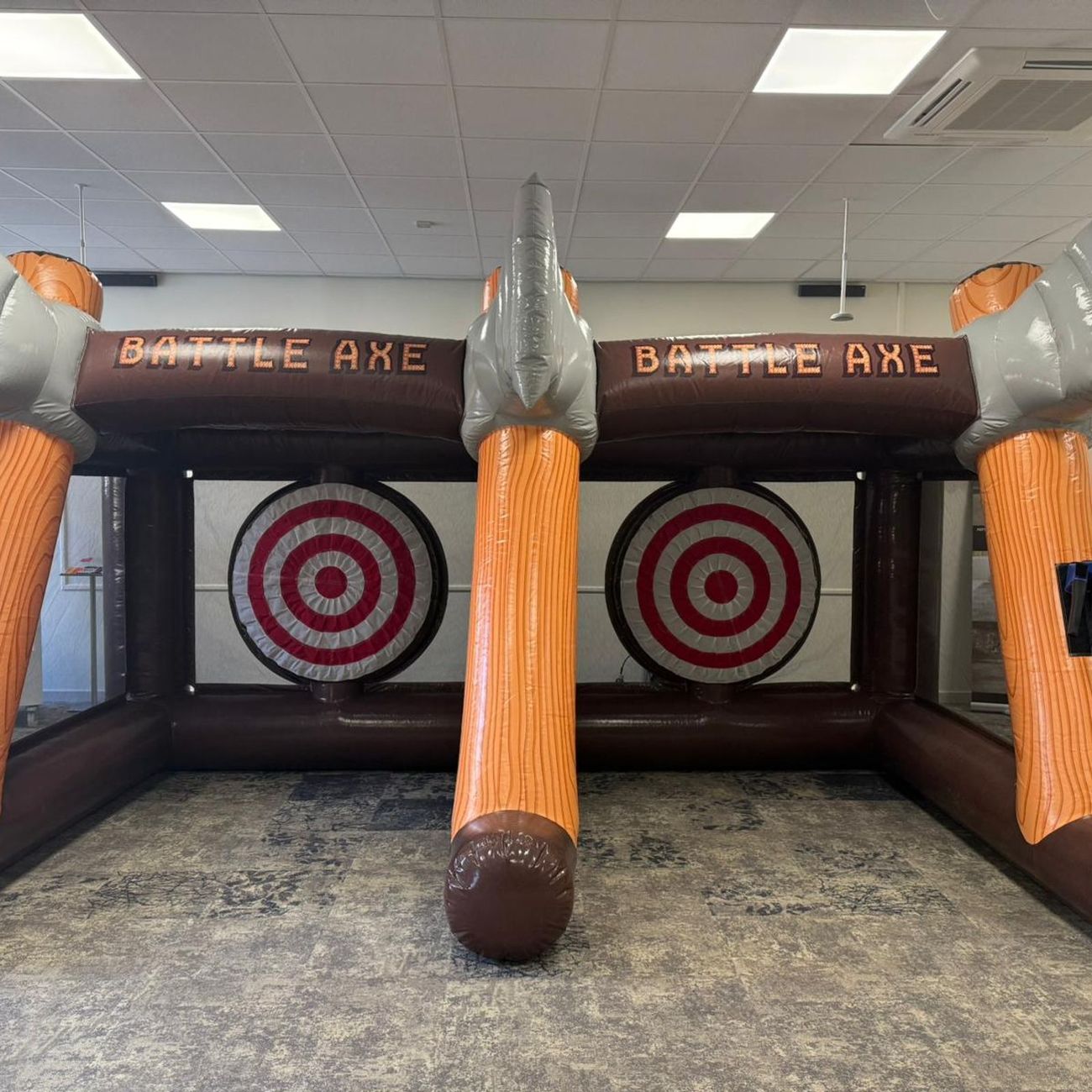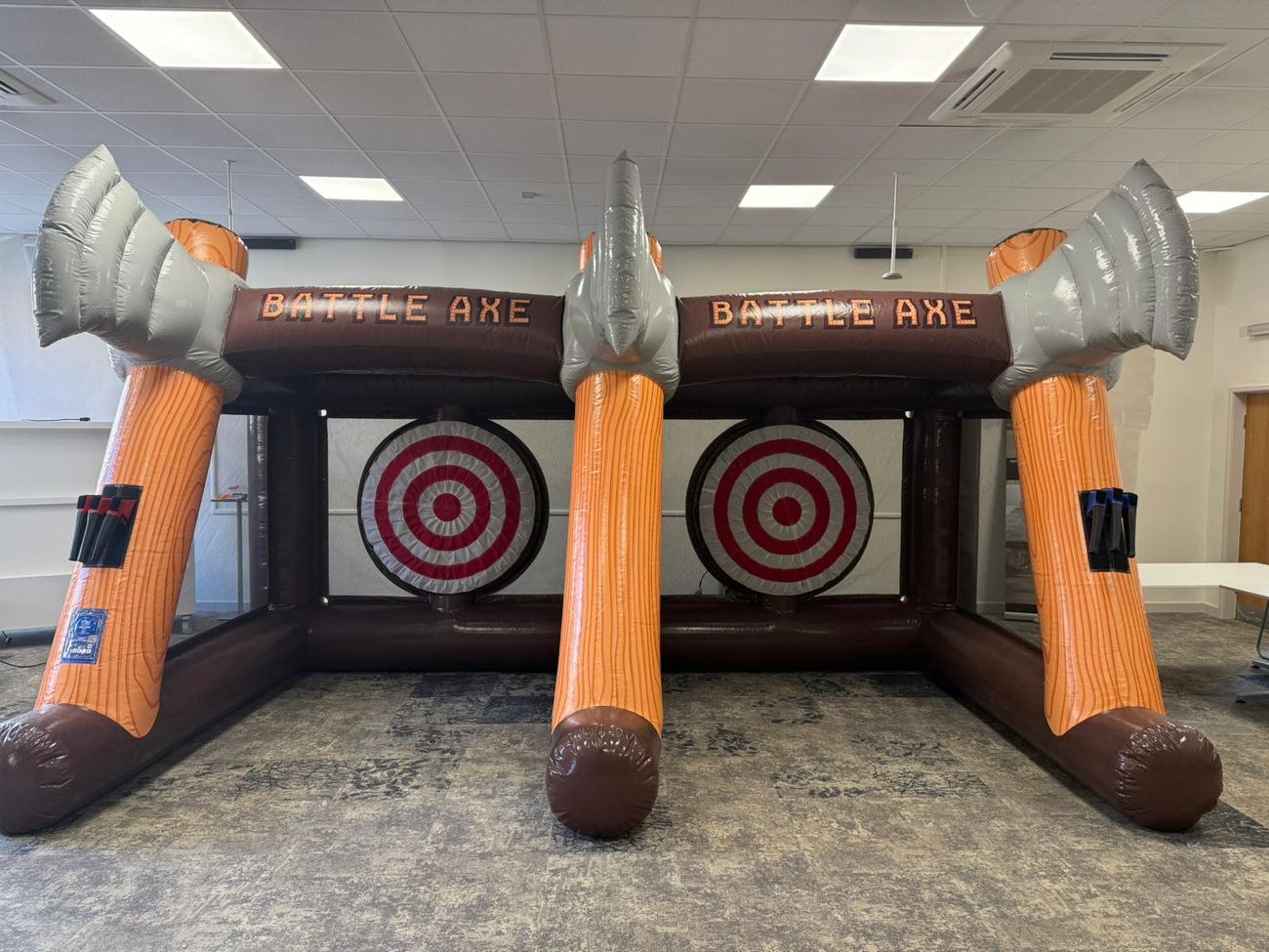 When you hire our Twin Axe Throwing game, you receive the fully inflatable game unit, a set of soft foam axes, professional setup and breakdown by our experienced team, and dedicated event support. We supply everything needed for the game.