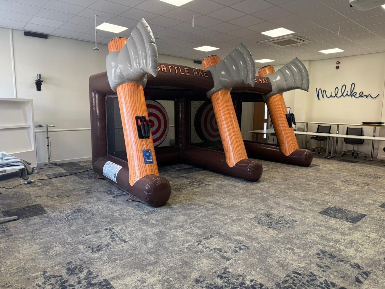 Players take turns throwing soft foam axes at the target, competing to score the most points or hit the elusive "Killshot" for maximum bragging rights. If you're looking for something with more edge than traditional corporate entertainment, this delivers without the safety concerns of actual axes.
